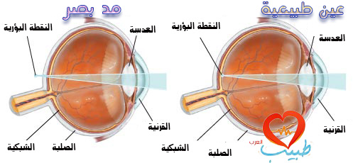 يحدث مد البصر عندما تكون الصورة التي تشكلت عن طريق آلية التبؤر خلف الشبكية. وغالباً ما يحدث ذلك إذا كانت العين أقصر من المعدل الطبيعي. ويحدث مد البصر في الأساس عن طريق سببين: