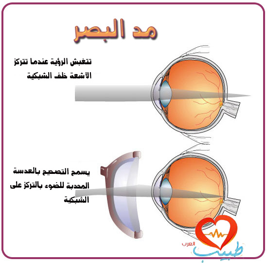 يمكن تعريف مد البصر على أنه “بعد النظر” أو “الطمَس”. وهي حالة العين التي تسبب فيها قوة الانكسار في العين دخول أشعة الضوء إلى العين لتؤدي إلى محرق يقع خلف شبكية العين بينما يتم الاحتفاظ على تكيف العين في حالة الاسترخاء. تكون حدة البصر أفضل في المسافات البعيدة (على سبيل المثال 6 أمتار) منها على المسافات القريبة (على سبيل المثال 0.33 متر).