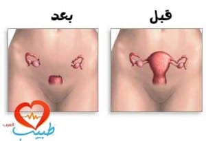 · يزال غالباً كامل الرحم خلال الجراحة، كما يمكن أن يزيل الطبيب أنبوبي فالوب والمبيضين.